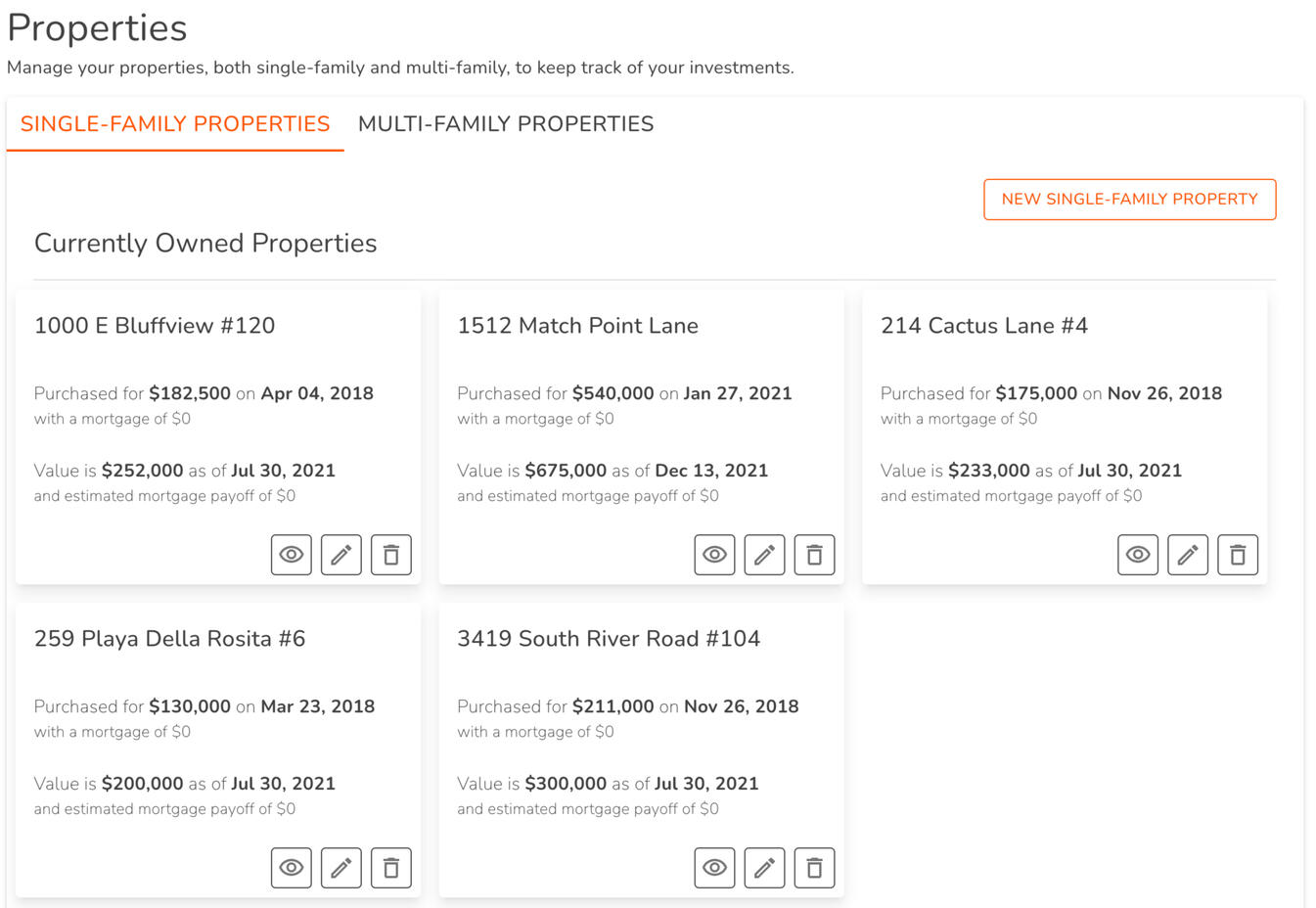 Track income and expenses for unlimited investments and properties